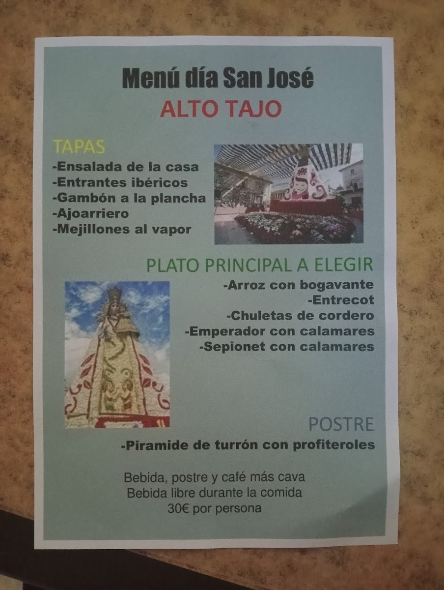 Welcome to BAR ALTO TAJO, a delightful culinary gem nestled in Utiel, Valencia. This charming restaurant offers a menu that captivates both locals and visitors alike, featuring an exceptional menú del día for just €15. Diners are treated to a variety of mouthwatering starters like fresh salad, olives, and peanuts, which set the stage for hearty main courses. Indulge in the exquisite arroz al horno, grilled squid, and succulent ribs that showcase the rich flavors of the region.